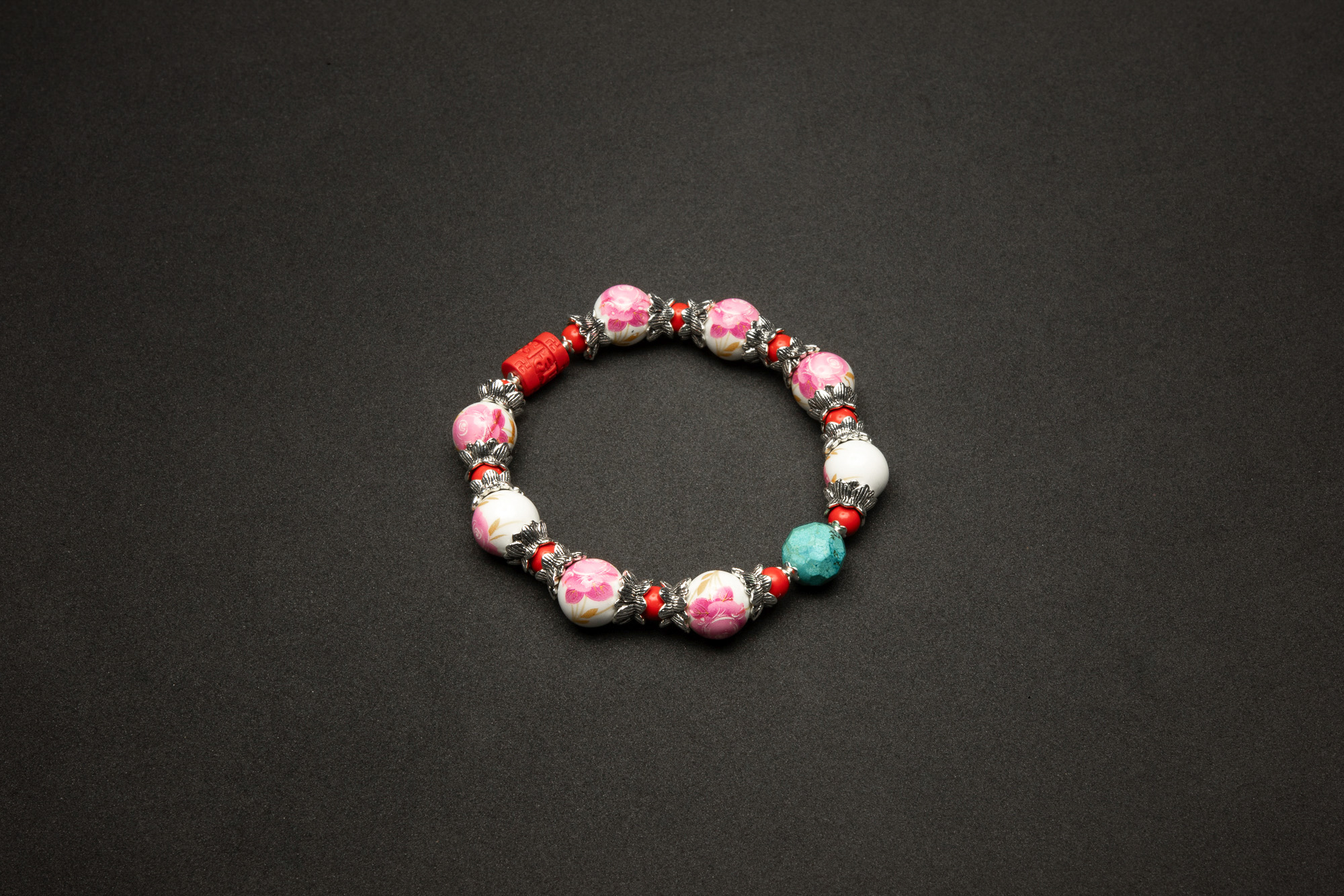 Japamala 9 Contas CHINESE BEAUTY Porcelana, Turquesa & Roda Mani